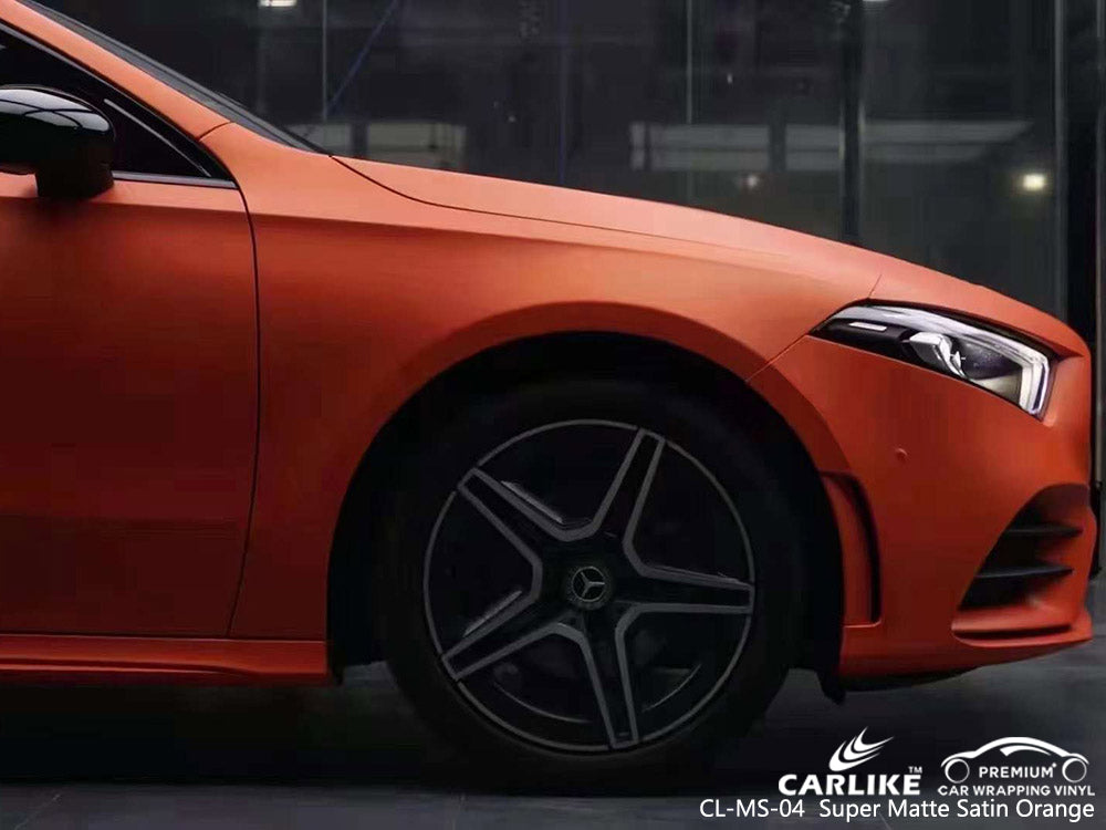 Achetez un habillage de voiture orange satiné super mat en ligne : https://carlikewrap.com/products/matte-satin-orange
